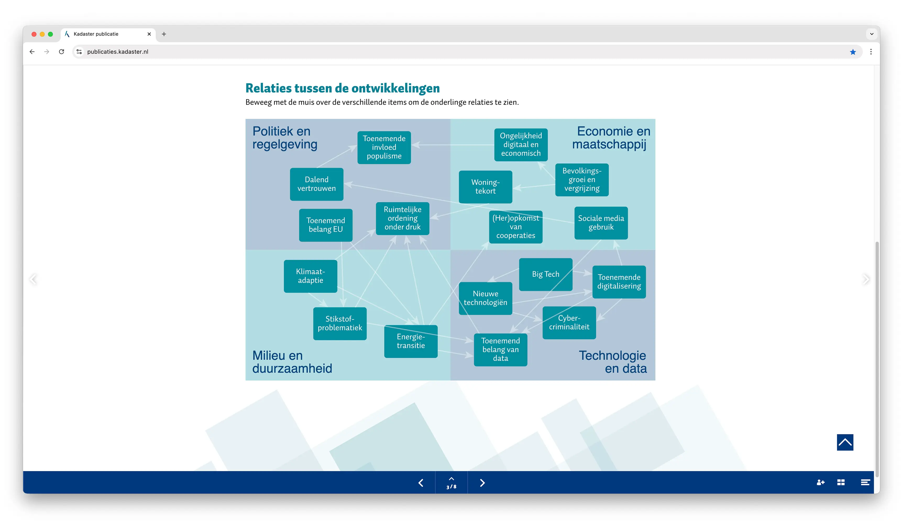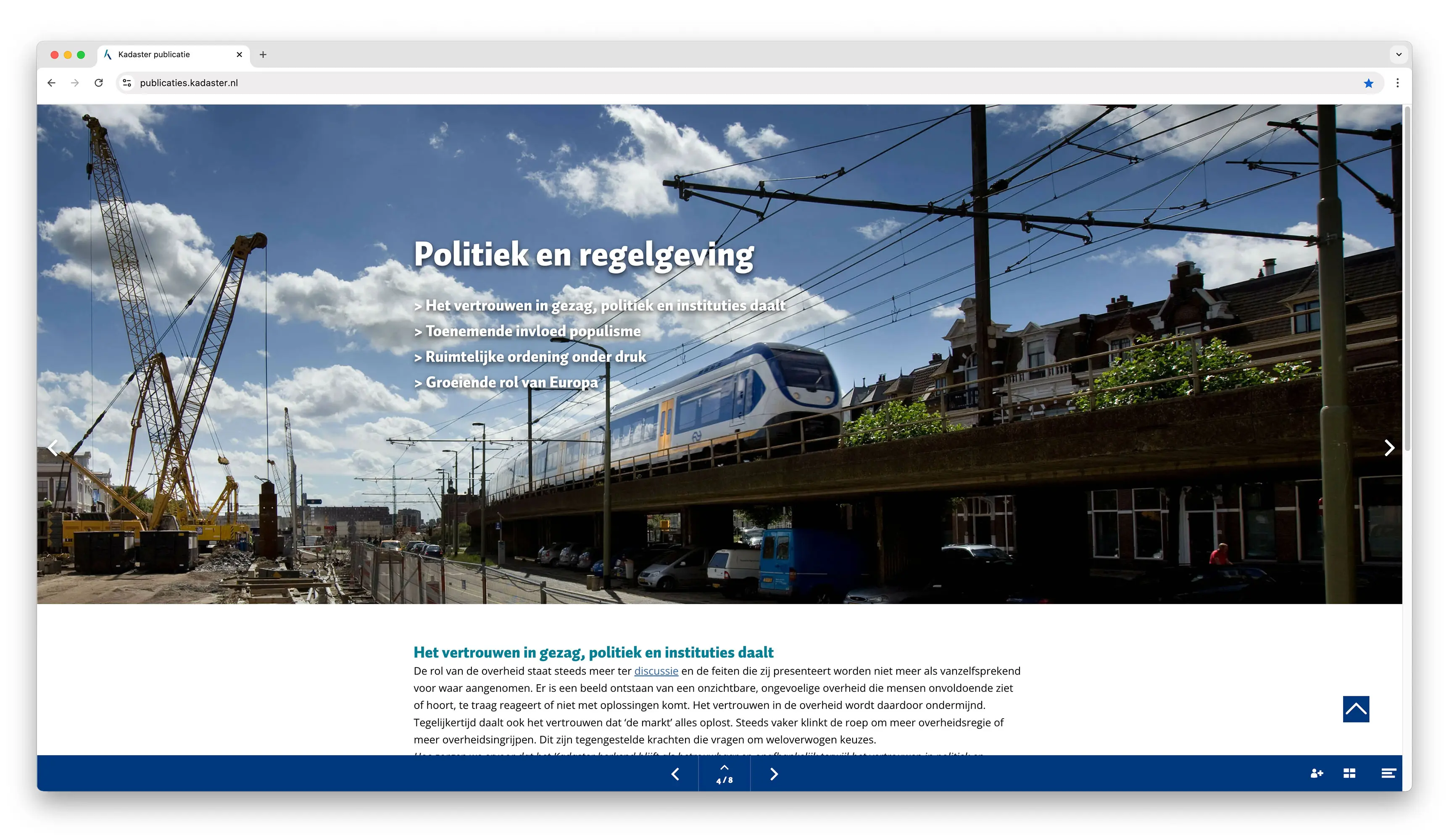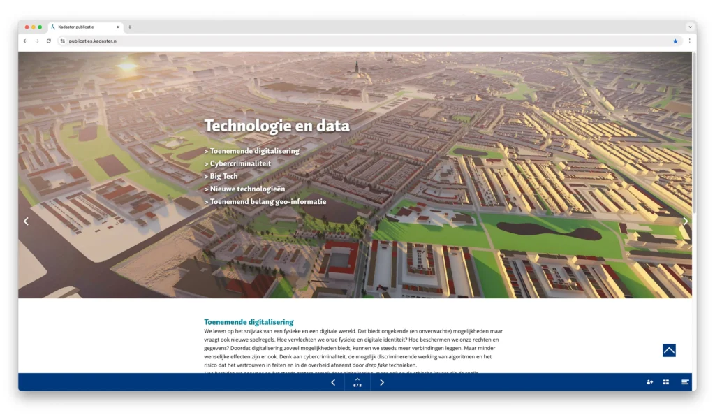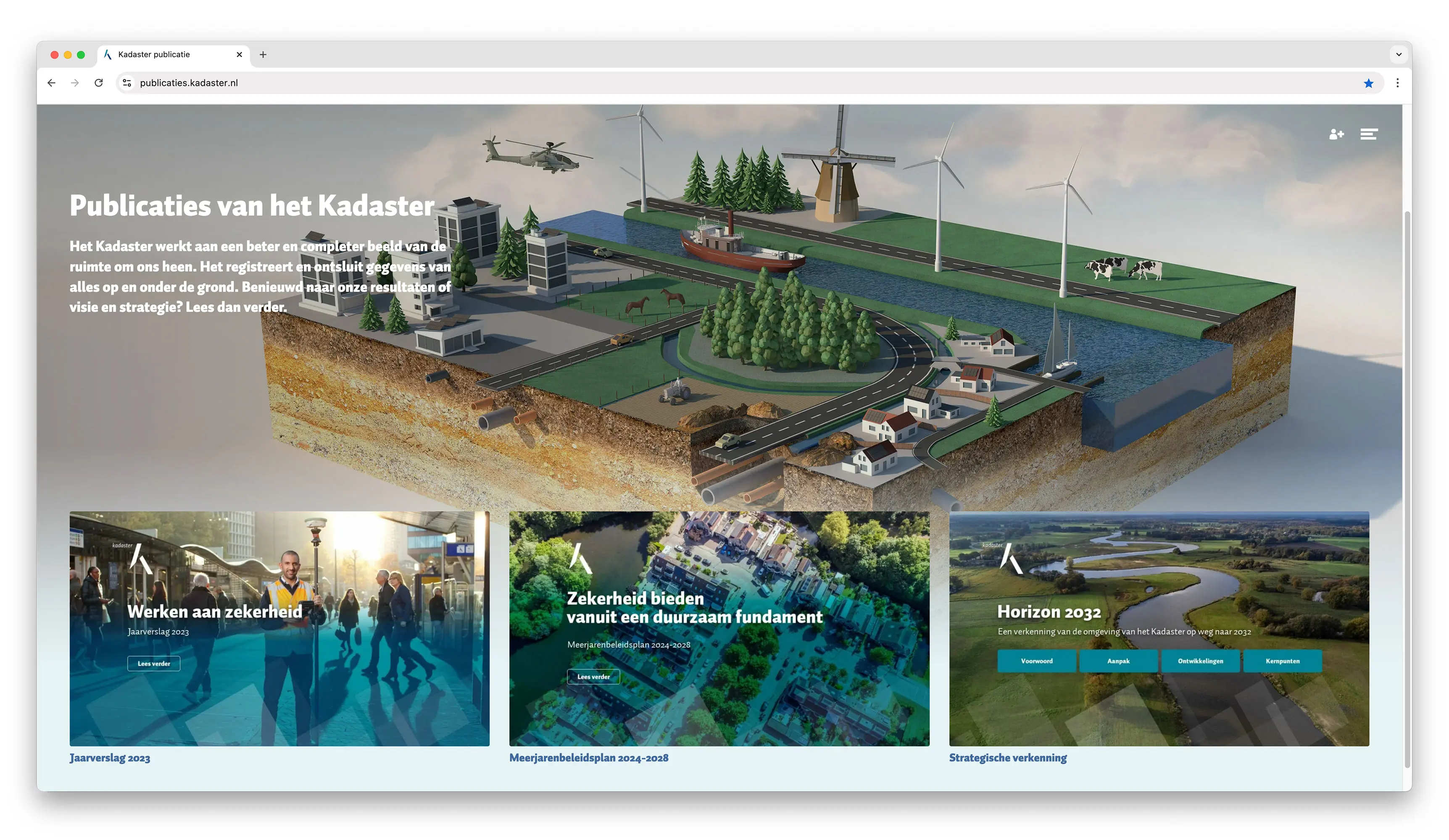 Het Kadaster werkt aan een beter en completer beeld van de ruimte om ons heen. Het registreert en ontsluit gegevens van alles op en onder de grond. Benieuwd naar de resultaten of visie en strategie?